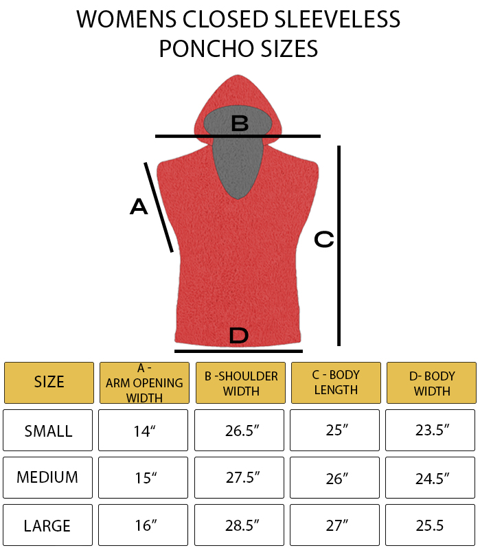 Women’s Closed Poncho Sleeveless Size Chart